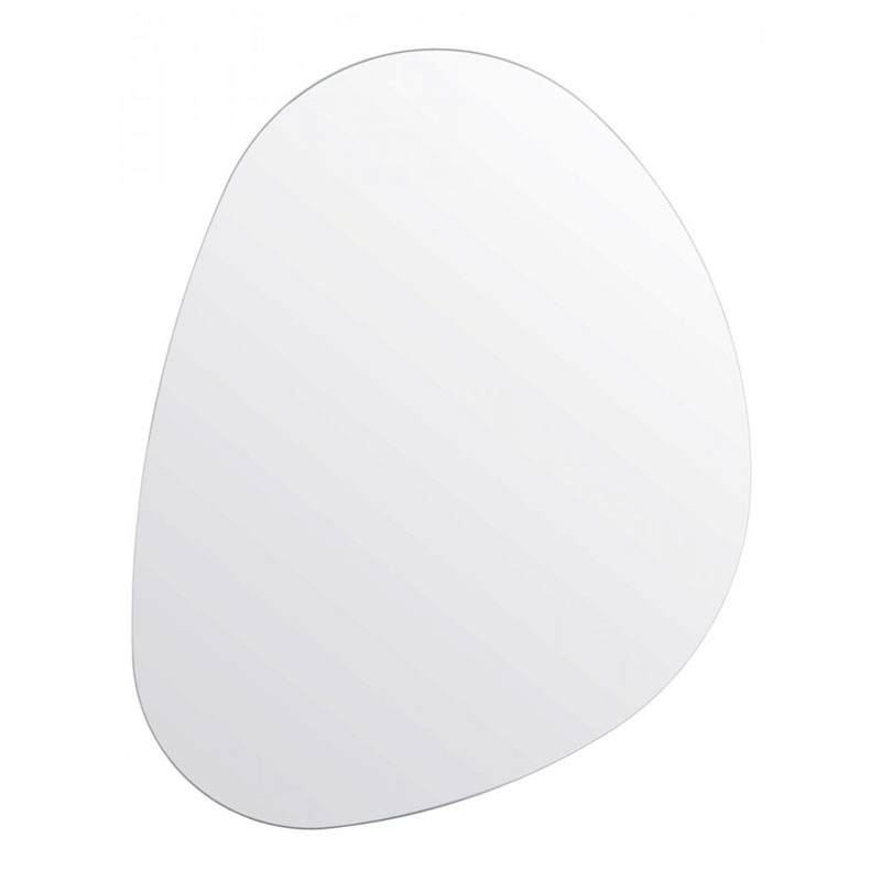 Zrcadlo s nepravidelným tvarem, které koupelně dodává lehkost a originalitu.