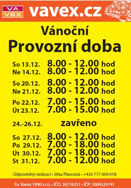 Vánoční provozní doba prodejna Příbram